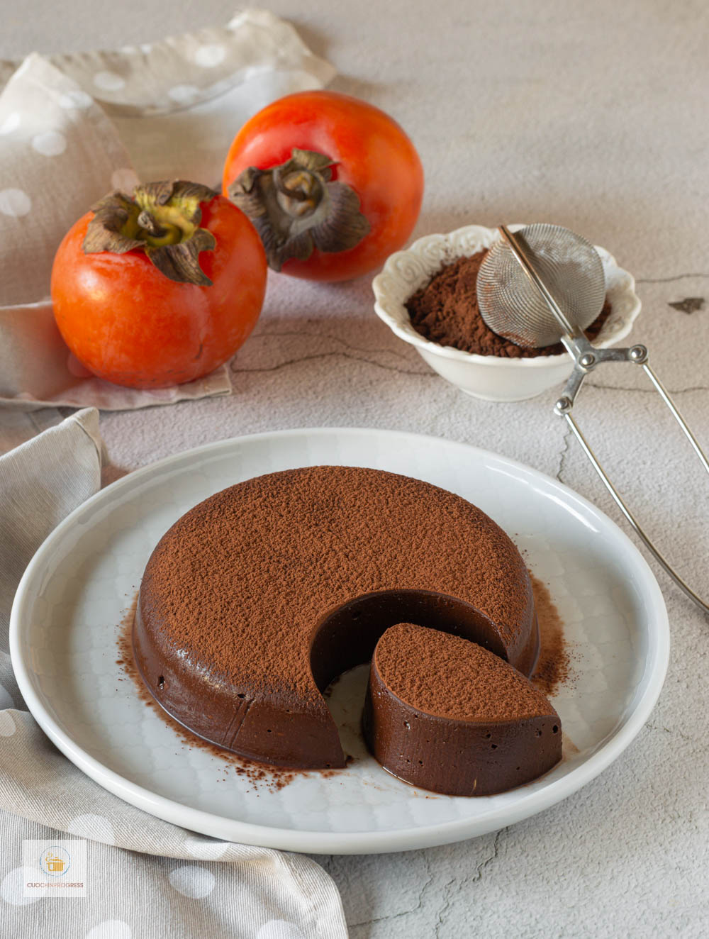 Il BUDINO DI CACHI E CACAO è un dolce che nasce dalla magia dell’autunno, quando i cachi maturi tingono di arancio i rami spogli e regalano la loro dolcezza vellutata. Il budino di cachi e cacao è una coccola al cucchiaio, cremosa e profumata, che conquista con la sua semplicità e il suo gusto intenso. Realizzato con pochi ingredienti — polpa di cachi ben maturi e cacao amaro — questo dessert non ha bisogno né di zucchero né di cottura: è la natura stessa a renderlo dolce e avvolgente. La consistenza morbida e setosa ricorda quella di una mousse al cioccolato, ma con un’anima più leggera e autentica, perfetta anche per chi cerca un dolce sano e senza sensi di colpa. Il segreto sta nella maturazione dei cachi, che devono essere morbidi e quasi caramellati per fondersi armoniosamente con il cacao e creare una crema compatta e golosa. Una volta riposato in frigorifero, il budino si trasforma in una sinfonia di contrasti: il gusto fruttato e dolce del caco incontra l’intensità leggermente amara del cacao, creando un equilibrio elegante e naturale. Servito in monoporzioni, o in piccoli bicchierini, decorato con granella di nocciole, scaglie di cioccolato o panna montata, il budino di cachi e cacao diventa un dessert raffinato, perfetto per concludere un pranzo autunnale o natalizio con leggerezza e stile. Un dolce che sa di casa, di stagioni che cambiano e di piccoli gesti lenti: il piacere di frullare, attendere e assaporare il gusto autentico della frutta trasformata in pura poesia.