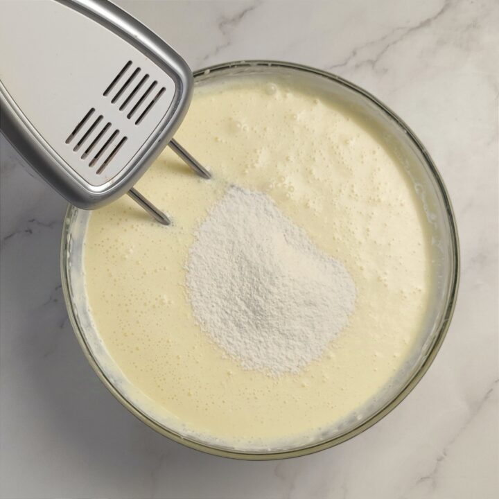 In una ciotola ampia o nel vaso della planetaria ponete il formaggio spalmabile e lo zucchero. Lavoratelo per 2 minuti fino ad ottenere un composto omogeneo e senza grumi.