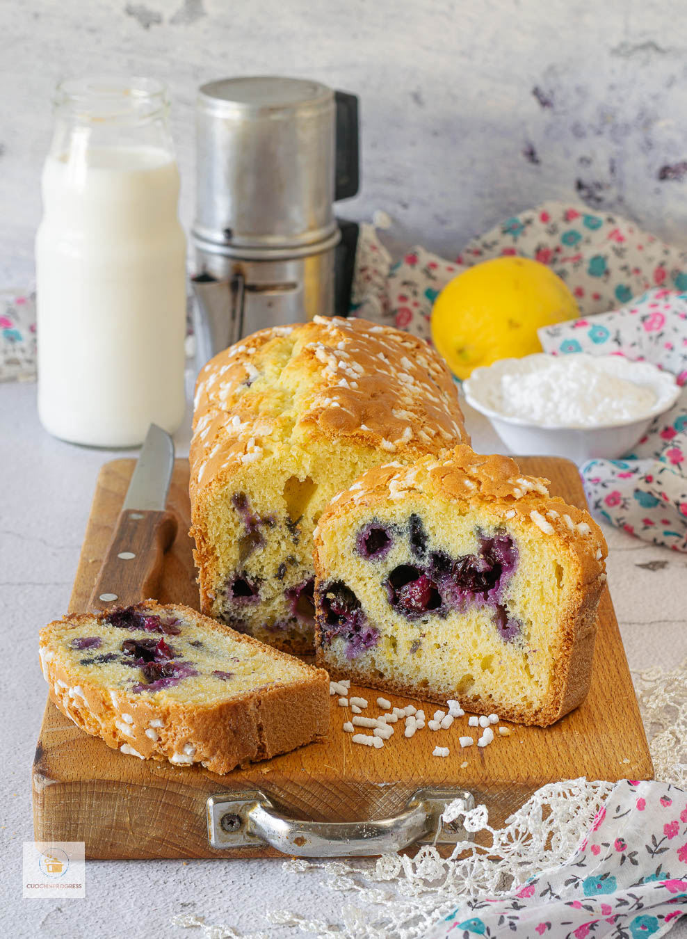 Perfetto da gustare a colazione con latte o tè, oppure a merenda accompagnato da yogurt o una crema leggera. Si presta anche a varianti golose, come l’aggiunta di gocce di cioccolato per una versione più ricca o, a copertura, una glassa al limone, per un profumo agrumato ancor più deciso.