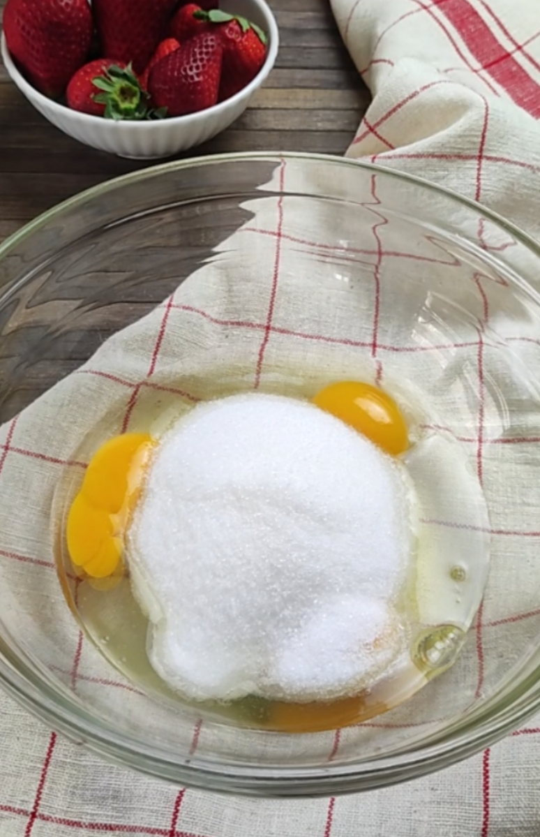 Lavate e asciugate le fragole, poi tagliatele a pezzetti e tenetele da parte.