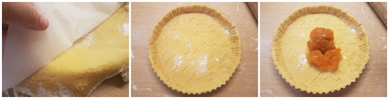 Fate aderire bene la base e i bordi e togliete la pasta frolla in eccesso.