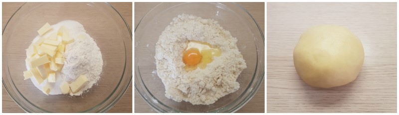 In una ciotola capiente, mettete la farina setacciata a fontana. Poi aggiungete lo zucchero, il pizzico di sale, lo strutto (o il burro freddo a pezzetti) e l’uovo. Lavorate il composto prima con una forchetta, poi impastate con le mani fino ad ottenere composto liscio ed omogeneo.