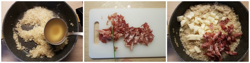 La preparazione del risotto con speck e scamorza è semplicissima! Per prima cosa preparate il brodo vegetale (anche con il dado, se avete fretta).