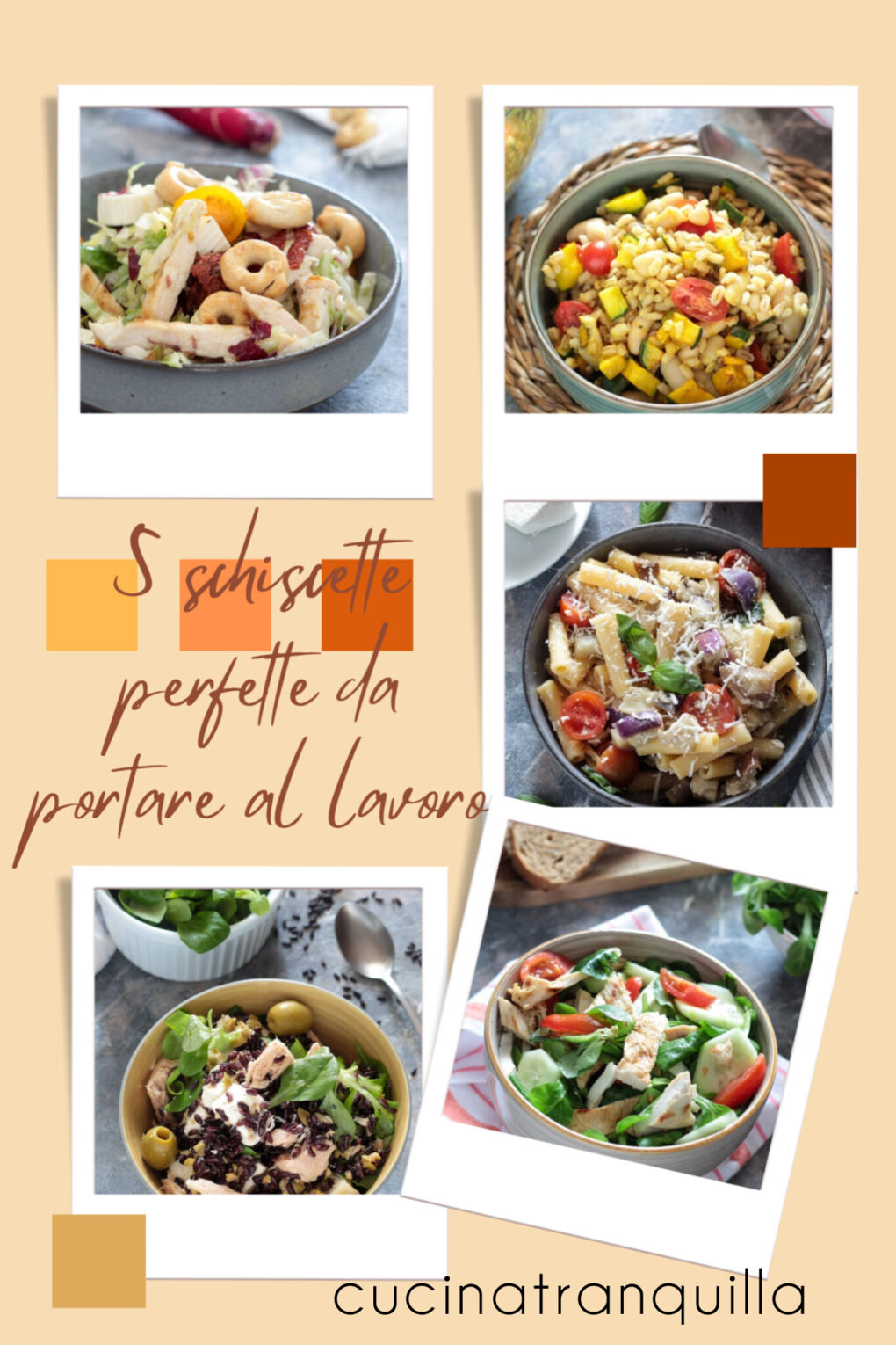 5 schiscette perfette da portare al lavoro (o nel tempo libero), 5 idee facili, pratiche e sfiziose che puoi portare con te al lavoro oppure da consumare nel tempo libero. Questa idea nasce perché tanti followers mi hanno chiesto di creare una piccola raccolta di ricette da salvare da poter portare al lavoro. Allora ho pensato di unire l’utile al dilettevole e unire qui le mie 5 idee preferite che possano accontentare un po’ di voi. Piatti freddi, che non hanno nessuna necessità di essere scaldati, ma soprattutto che non sporcano abiti o luoghi. Basterà procurarsi uno o due contenitori ermetici, una borsa adatta a contenere il cibo di quelle che si trovano anche nei negozi di casalinghi oppure su Amazon, qualche tavoletta di ghiaccio ed il gioco è fatto. Se volete poi sbizzarrirvi con colori perfetti per rallegrare i vostri momenti di pausa basterà semplicemente procurarsi borracce e posate delle vostre linee preferite. Insomma, per trasformare un momento particolare come quello della pausa pranzo fuori casa in un momento lieto e divertente è più facile di quello che pensate. Badate bene, non vi lascio delle idee ordinarie, di quelle super scontate da fare, ma piccole ricette un po’ particolari e gustose.