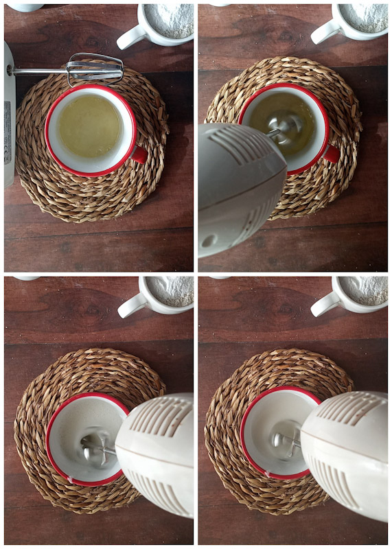 Per fare questa operazione, siccome ho utilizzato un solo albume, ho usato una tazza per contenerlo e montarlo bene.