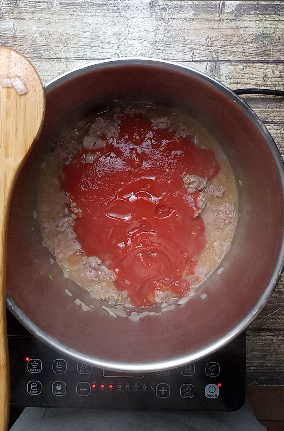 Uniamo due mestoli di acqua di cottura del riso al sugo, scoliamo il riso e uniamolo al condimento, cucinandolo al dente.