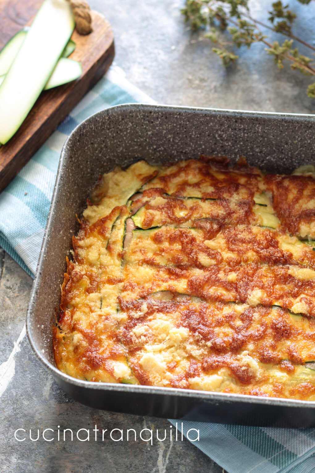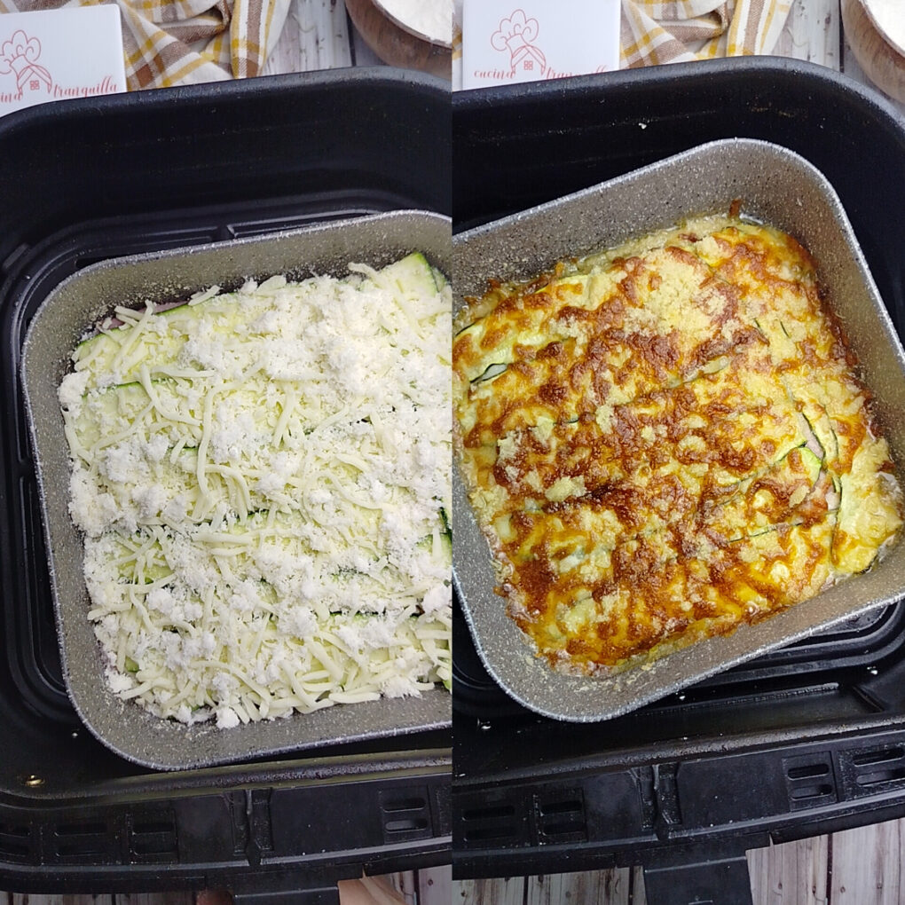 Potete grigliare le zucchine velocemente su una piastra, oppure passarle in friggitrice ad aria per qualche minuto. Ovviamente varieranno i tempi di cottura ma il risultato finale dello sformato sarà ugualmente buono.