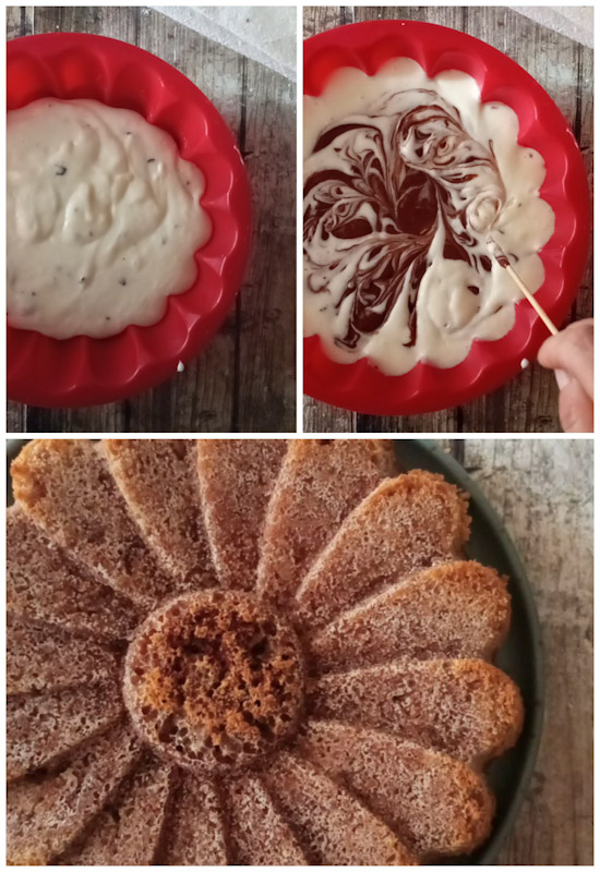 Aggiungere l’impasto al cacao e mescolare un po’.