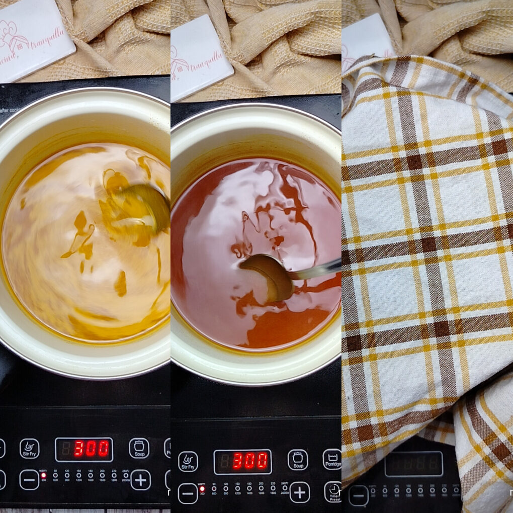 Procedete nel cuocere la tisana a fiamma bassa mescolando di tanto in tanto. Fate sobbollire due minuti. Come noterete l’acqua diventerà più scura. Spegnete e coprite con un telo o canovaccio pulito. Fate riposare 5 minuti.