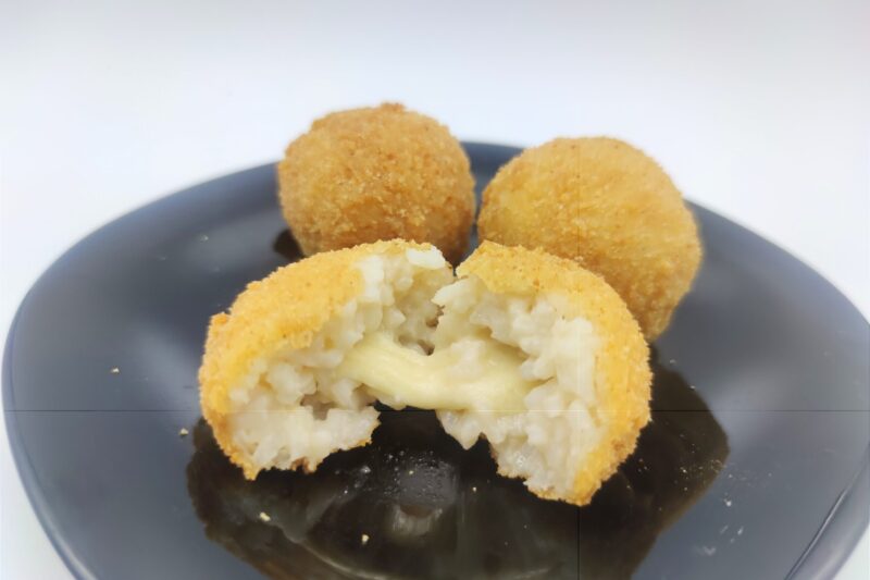Aggiungiamo il formaggio, amalgamiamo e lasciamo raffreddare. Una volta freddo il composto ne prendiamo un po’ con le mani e modelliamo, mettiamo un pezzo di mozzarella al centro e formiamo la crocchetta.