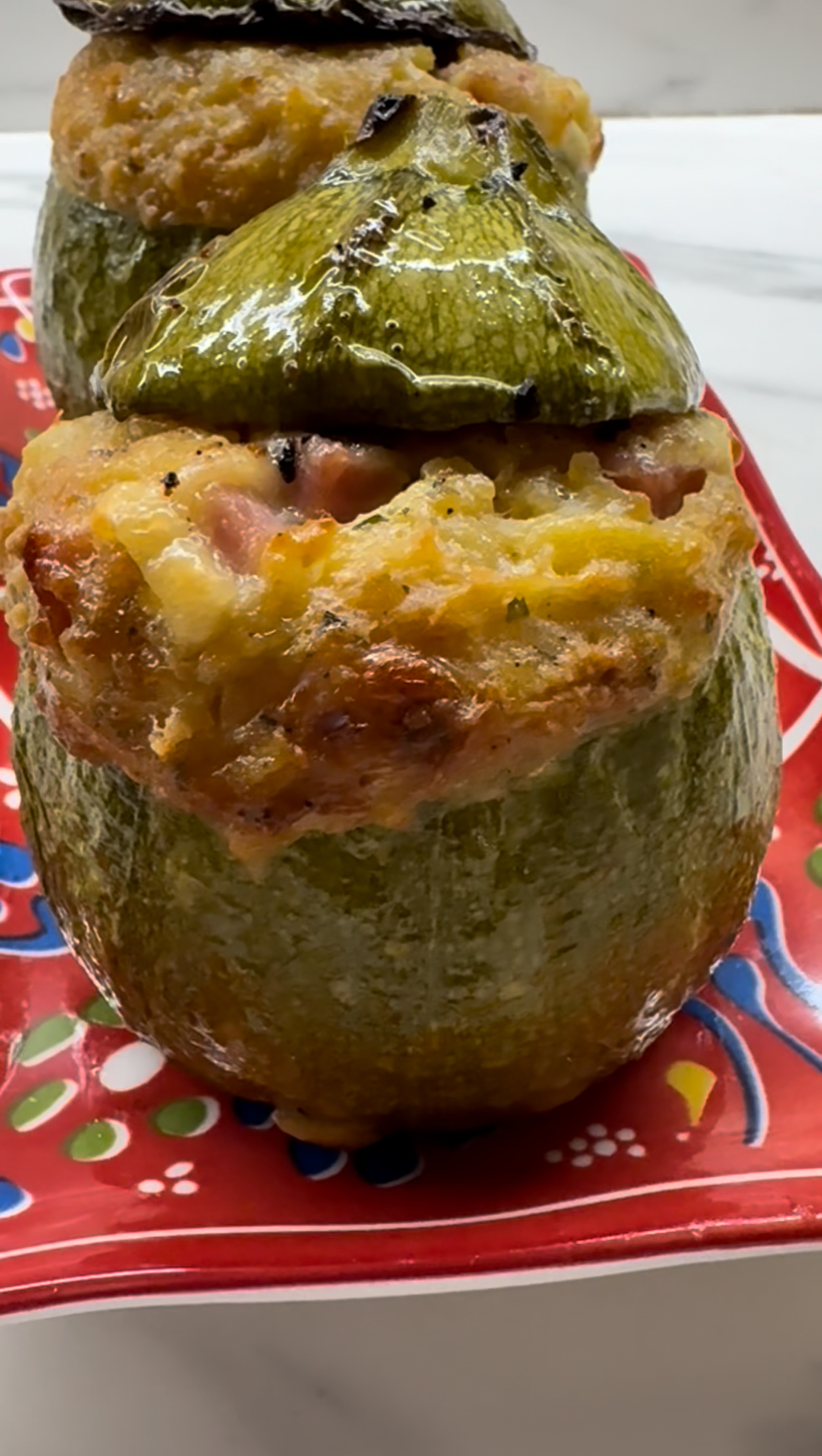 Zucchine Rotonde Ripiene 🫠 💣 👉🏻Ingredienti:3 Zucchine Rotonde Sale q.bOlio q.b1 Patata1 UovoPepe q.bParmigiano Grattugiato q.bPan grattato senza Glutine q.bProsciutto…