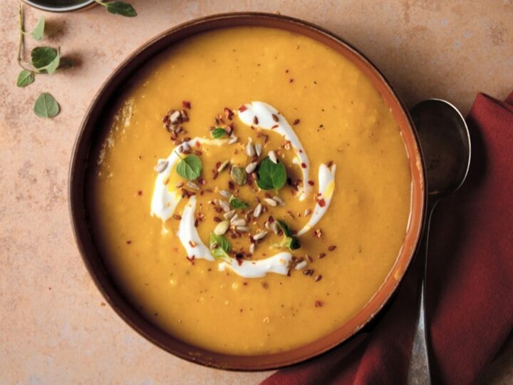 Aggiungi lo yogurt greco e i semi solo al momento di servire, poiché non si congelano bene insieme alla vellutata.
