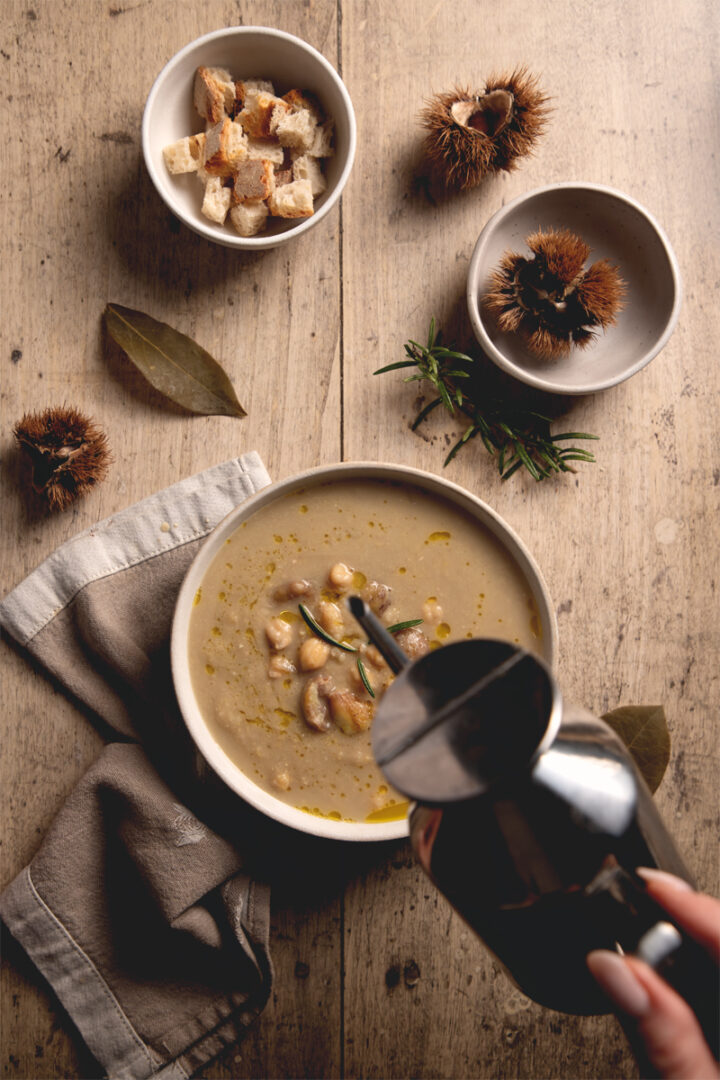 Se però vuoi renderla più cremosa, puoi schiacciare qualche castagna in più durante la cottura, direttamente nella pentola.
