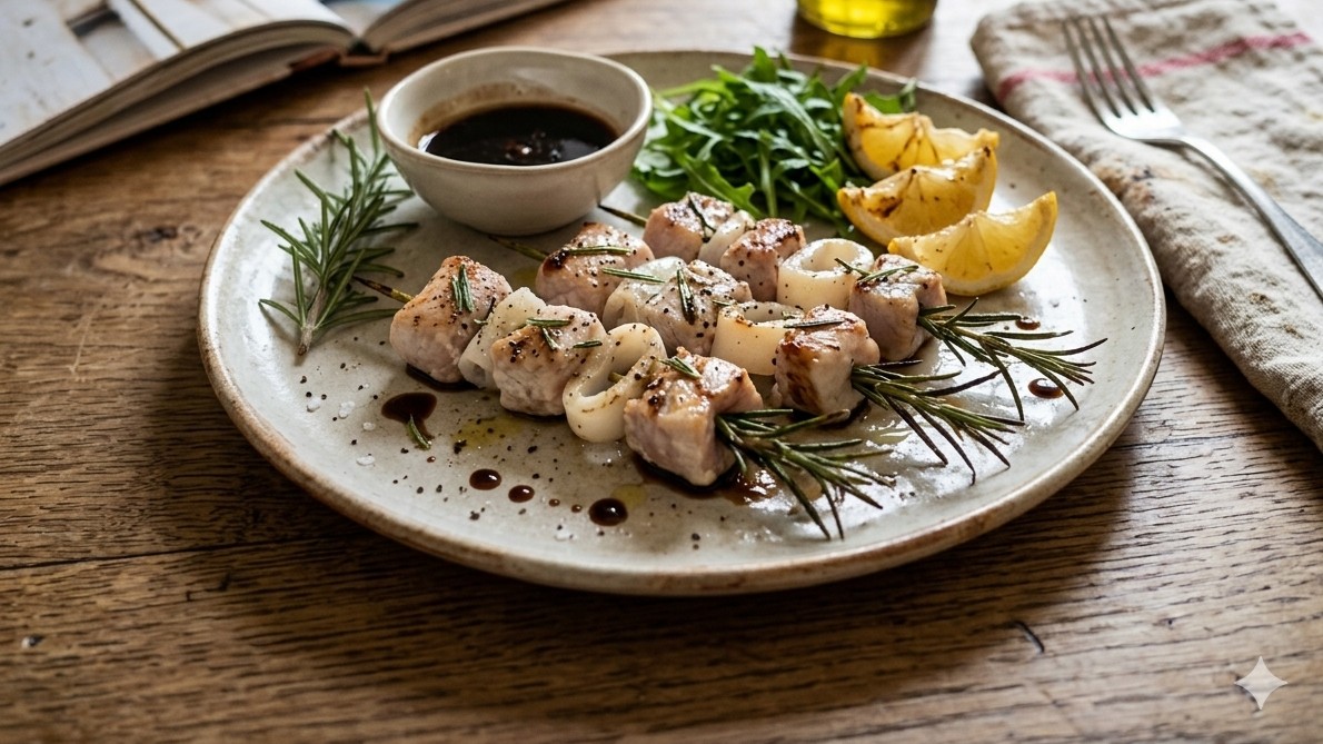 Scritto il 21 Marzo 202620 Marzo 2026 Pubblicato inAntipasti , Secondi Piatti Chef In Tour Spiedini Profumati di Calamari e Tacchino: Il Mare incontra l’Aia Un Abbinamento che Sorprende al profumo di rosmarino 🙂 Spesso in cucina restiamo legati alle…