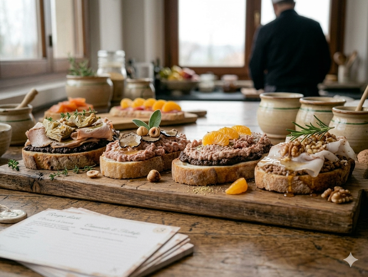 Scritto il 24 Marzo 202624 Marzo 2026 Pubblicato inAntipasti , Pane , Preparazioni di base Chef In Tour 4 bruschette d’autore per un antipasto d’eccellenza Dalla sapienza artigiana alla creatività gastronomica, L'antipasto all'italiana non è solo cibo: è un rito.…