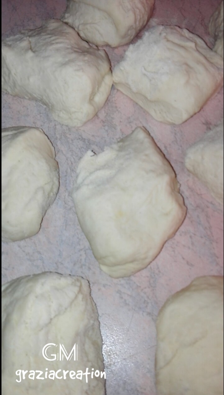 Dividere adesso l’impasto in cinque/sei palline e lasciare riposare per circa 30 minuti.