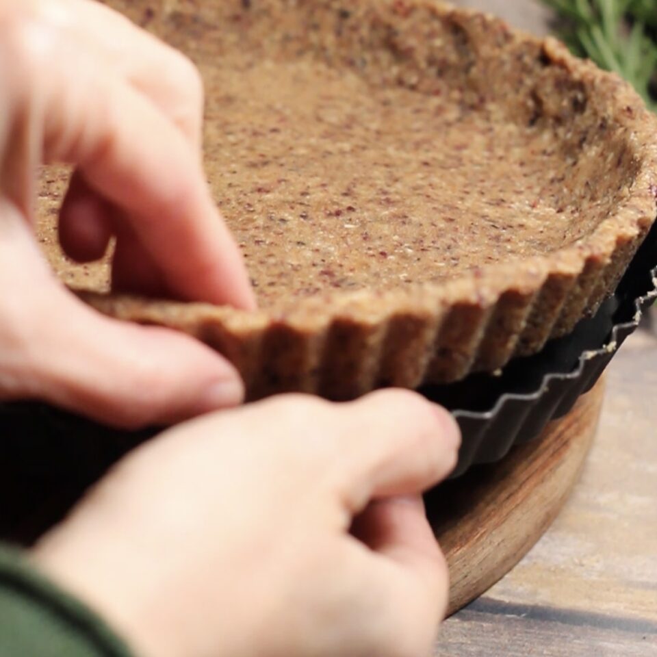 Versate il composto dentro lo stampo di (20 cm di diametro) e con l’aiuto di un cucchiaio formate una base molto compatta, partendo dal bordo e finendo con la base. Conservate in frigorifero per un’ora.