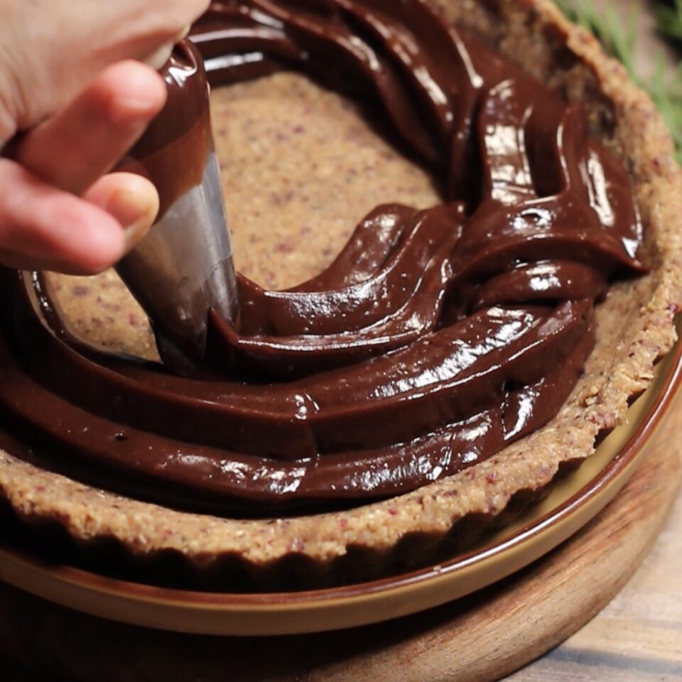 Quando sarà completamente fredda, riempite una sac a poche e farcite l’interno della crostata.