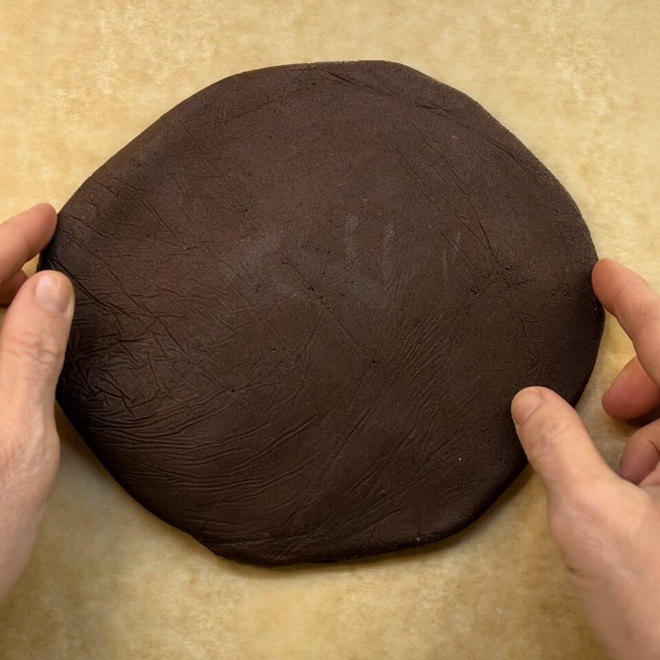 Arrotolatelo su se stesso, su un foglio di carta da forno, formando una spirale circolare e creare così una base della stessa dimensione dello stampo. Conservatelo in freezer per 10/15′.