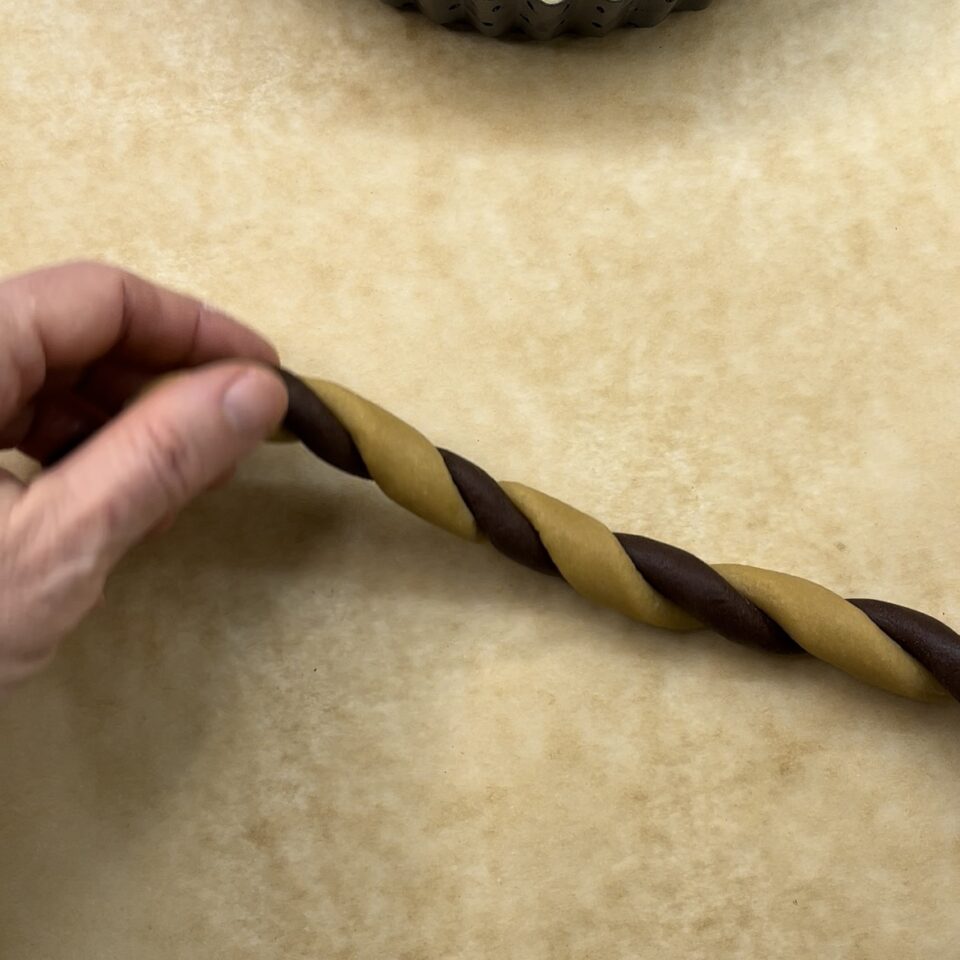 Unite le estremità pigiando con le dita e intrecciatele in lunghezza formando un bastoncino.