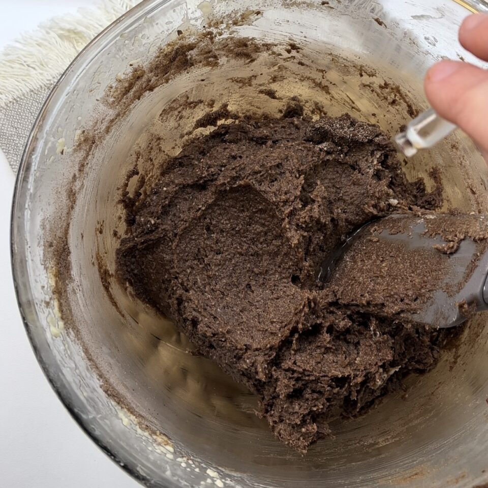 Adesso aggiungete le polveri, un po’ alla volta, al composto di zucchero, burro e uova. Unite anche la mezza fialetta di rum e mettete da parte.