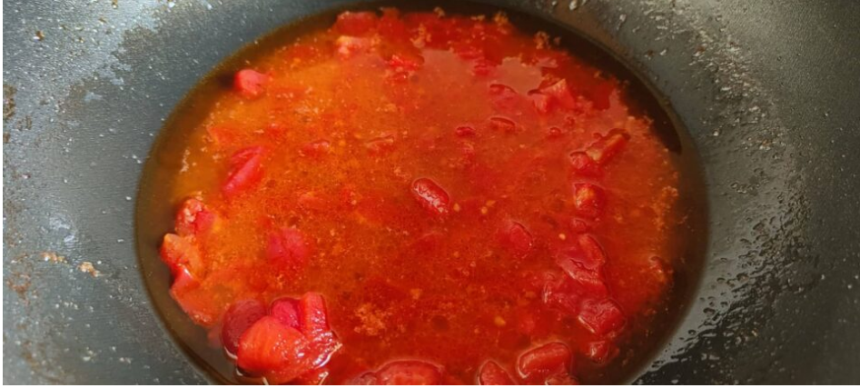 Quando l’aglio è dorato, rimuovilo (se intero) e aggiungi la polpa di pomodoro e un pizzico di sale. Lascia cuocere a fuoco medio-basso per circa 15-20 minuti.