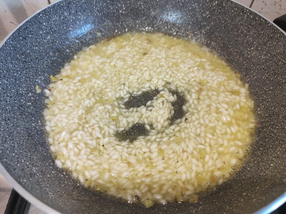 Poi versate il riso e fatelo tostare.