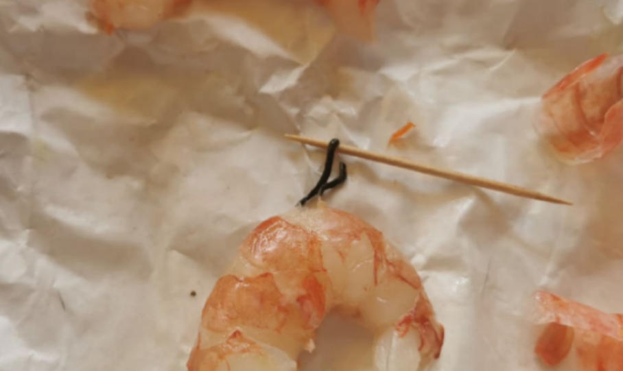 Eliminate l’intestino con l’aiuto di uno stuzzicadenti, sfilandolo sul dorso, lavateli e tamponateli.