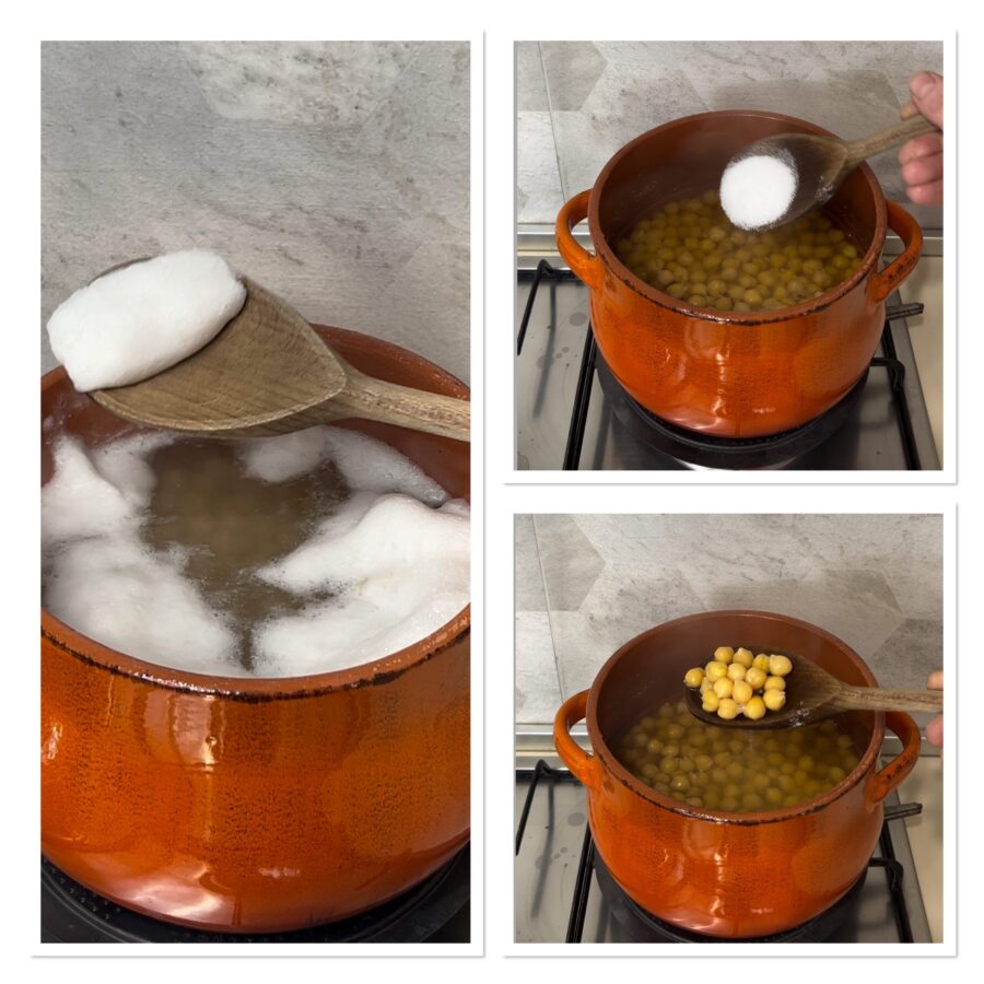 Molti amano usare un cucchiaino di bicarbonato nell’ammollo dei ceci, anche in questo caso i ceci risulteranno morbidi, ma il gusto del bicarbonato si sentirà un po’.