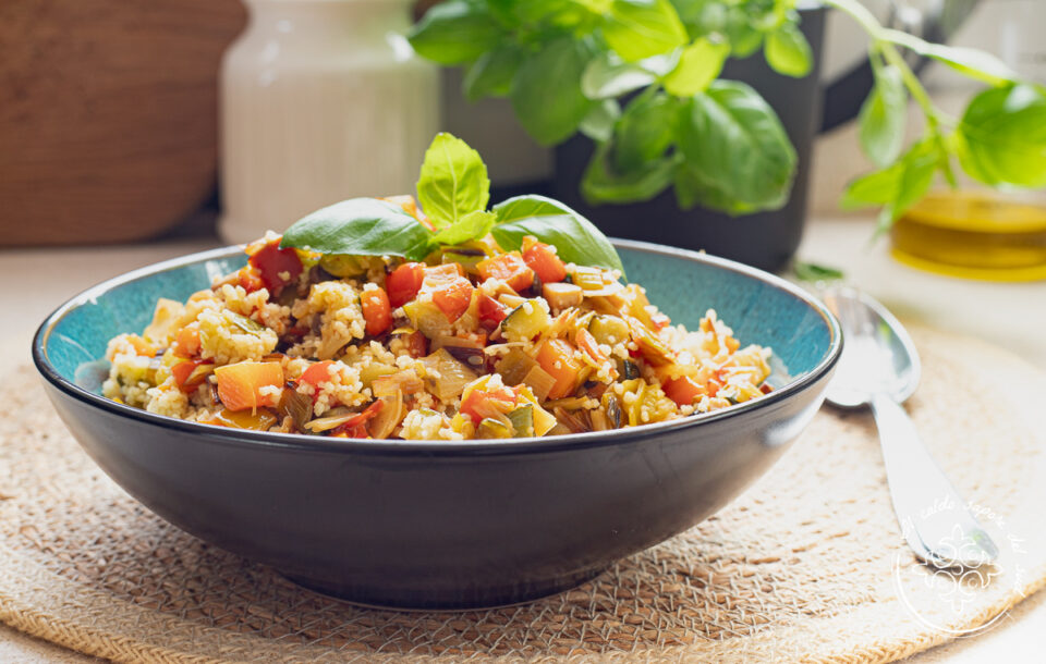 Il cous cous di verdure è ottimo sia caldo appena preparato, sia freddo, diventando perfetto per un pranzo estivo, per la schiscetta o per un buffet.
