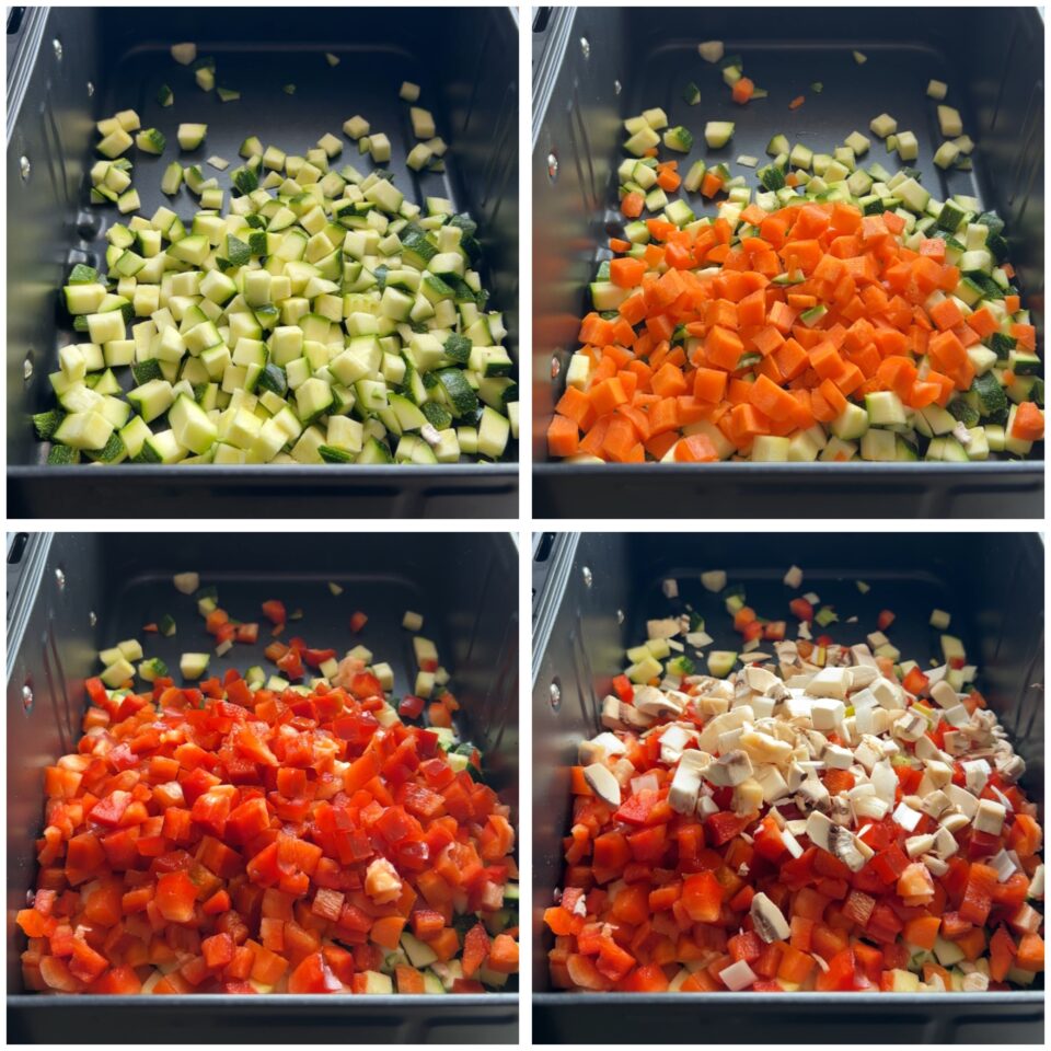 Se non avete la friggitrice ad aria potete cuocere le verdure anche in padella, saltandole con un filo d’olio finché diventano tenere, oppure in forno a circa 180°C per una ventina di minuti, mescolandole a metà cottura.