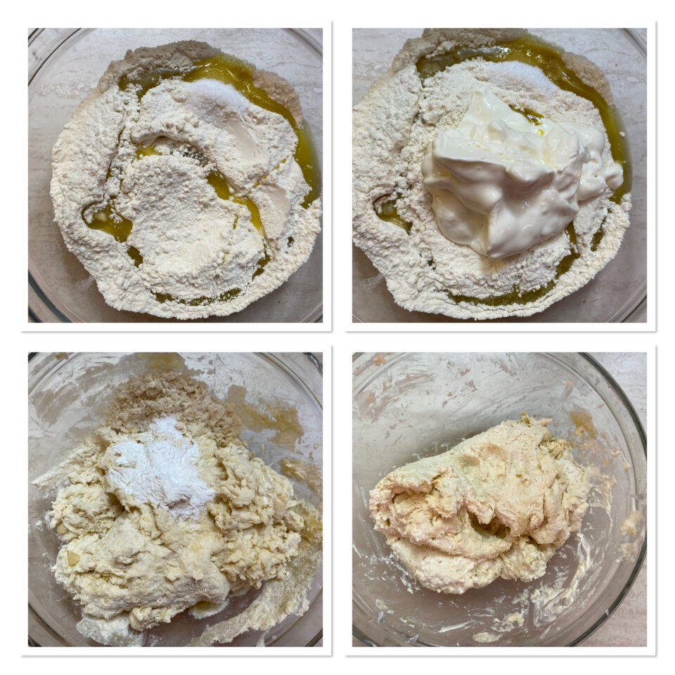 Impastate qualche minuto, non otterrete una pasta liscia per via del lievito che fa reazione con lo yogurt, quindi non dilungatevi.
