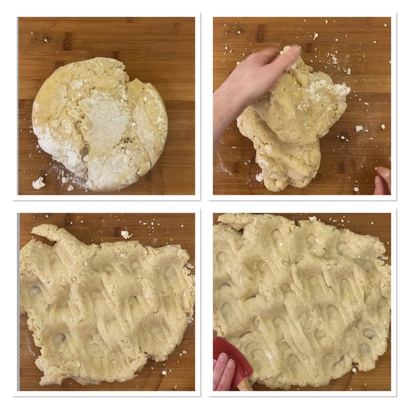 Dovrete allargare l’impasto e ripiegarlo su se stesso più volte.