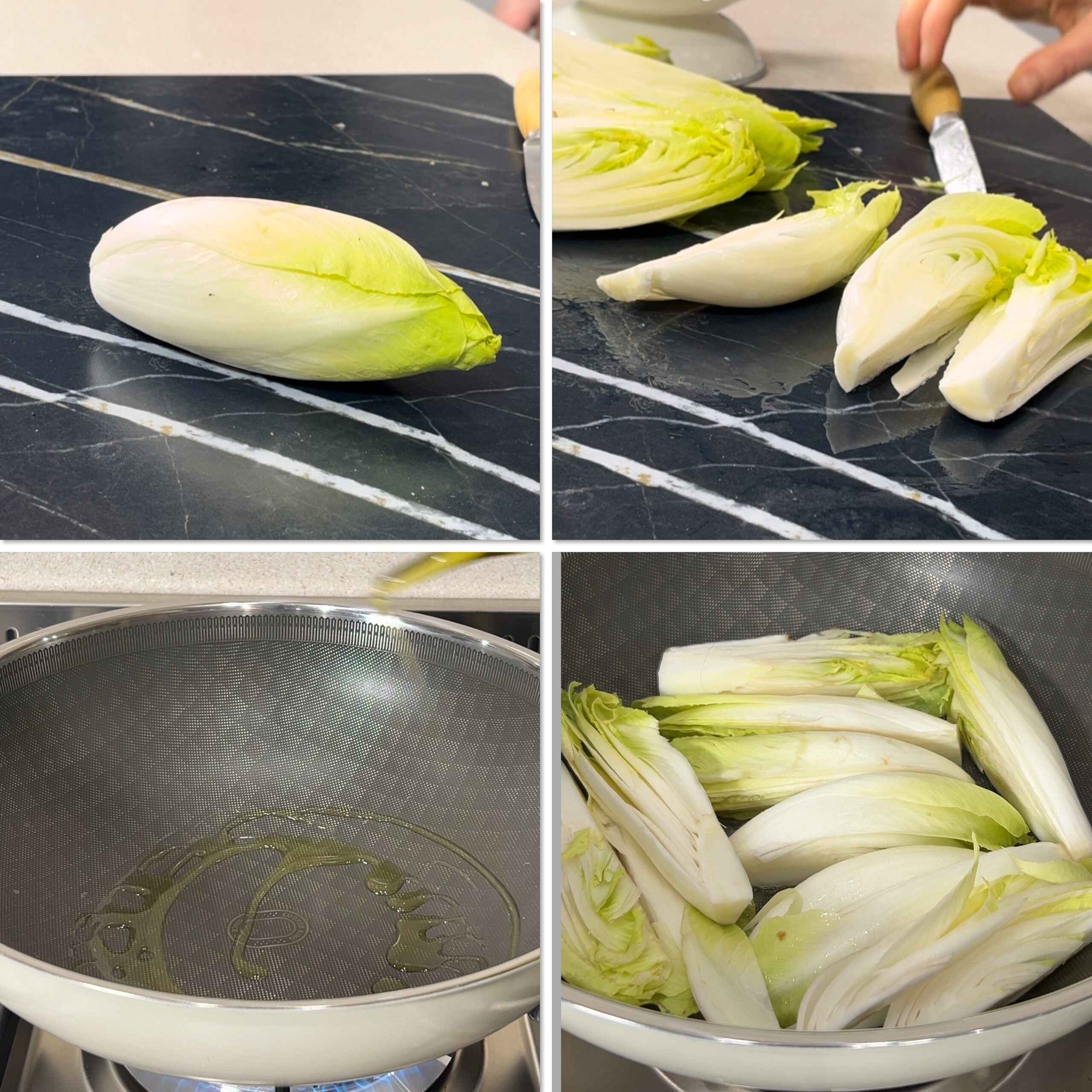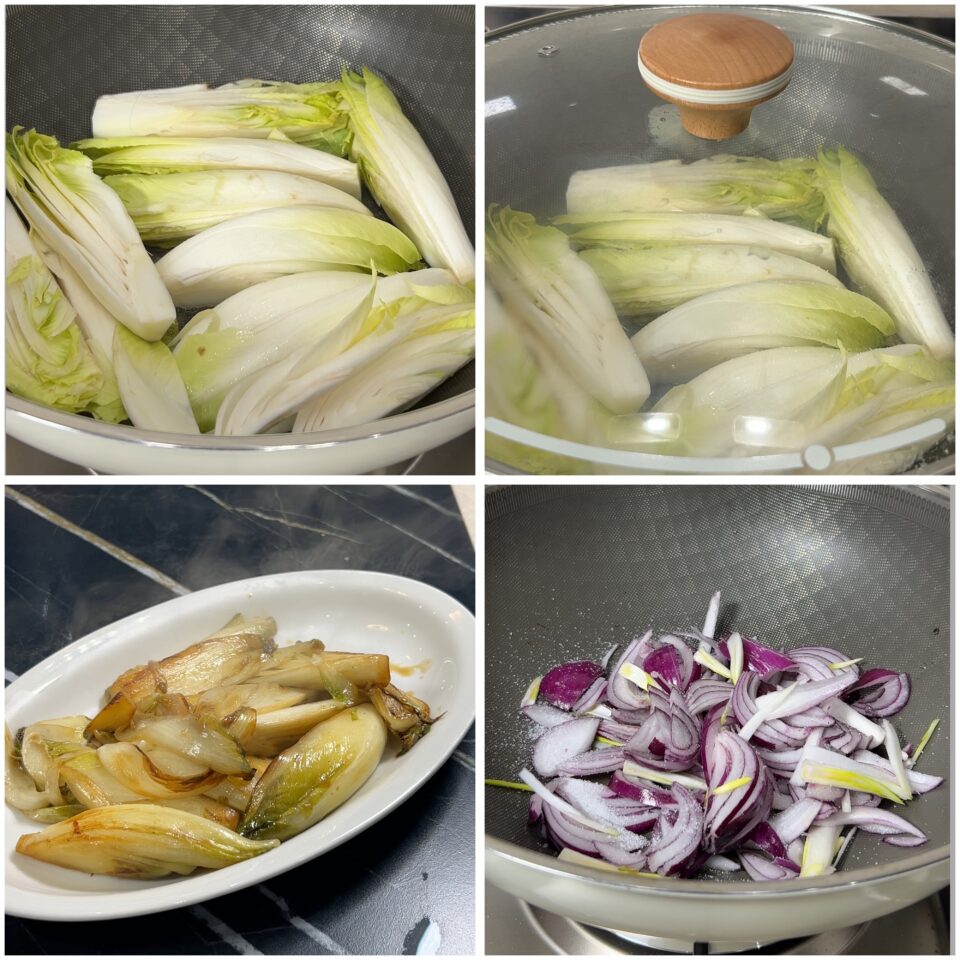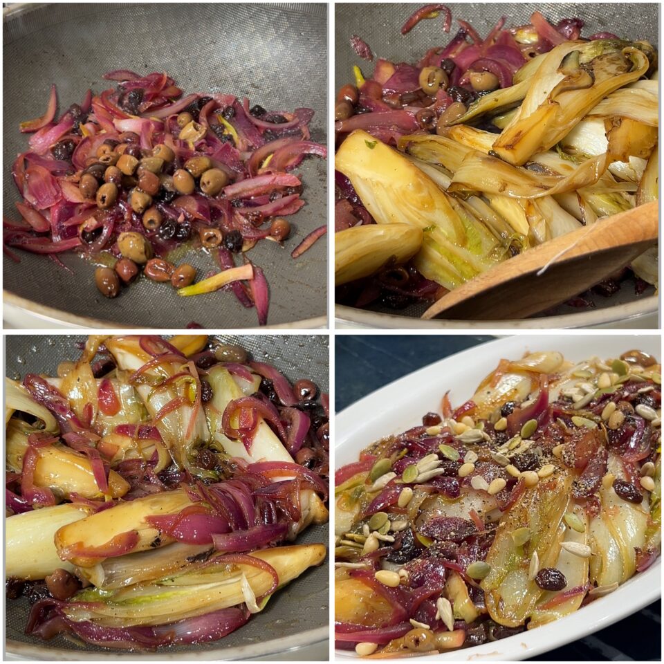 Preparazione dell’Indivia belga in agrodolce con cipolle e olive