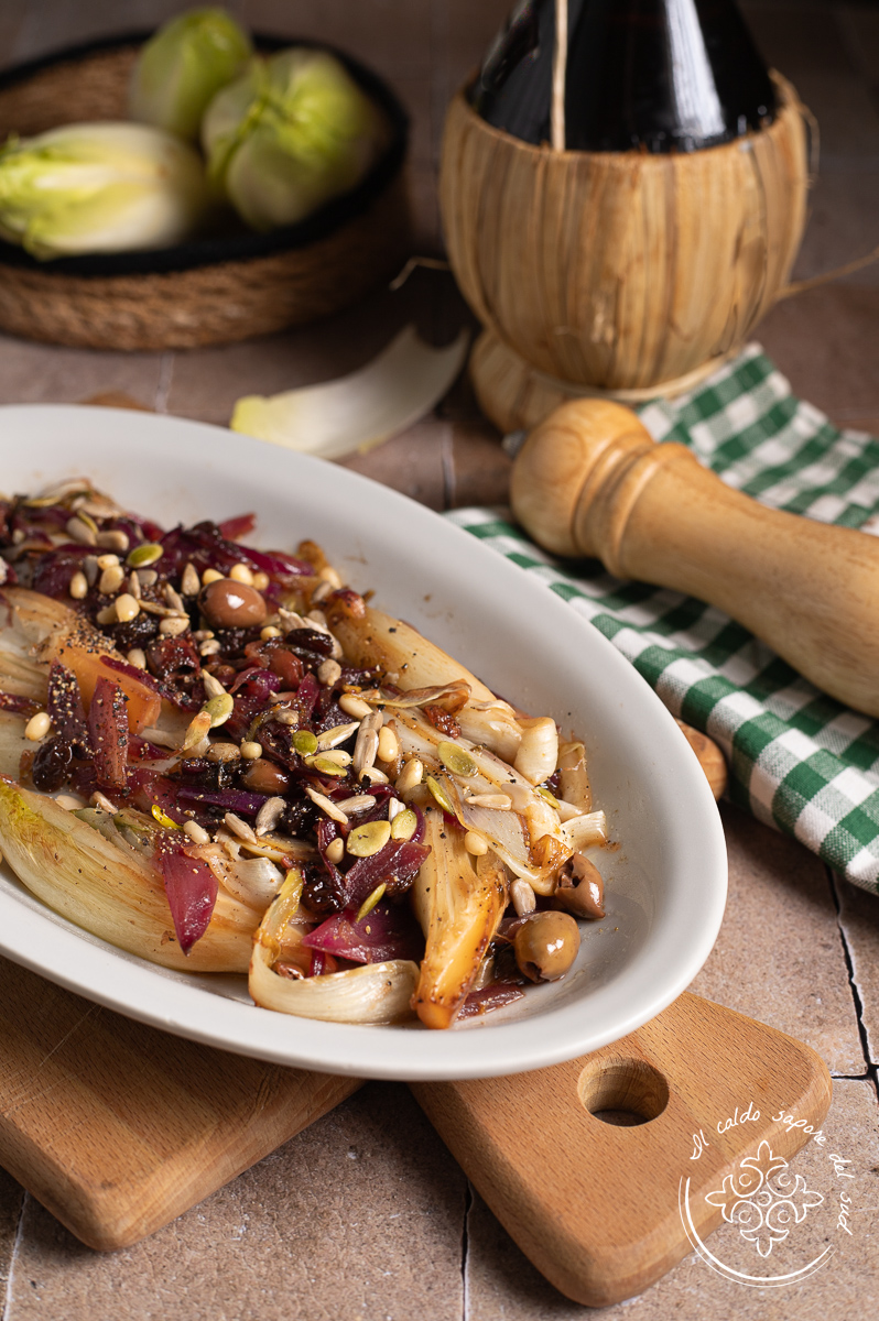 Come si fa Indivia belga in agrodolce con cipolle e olive