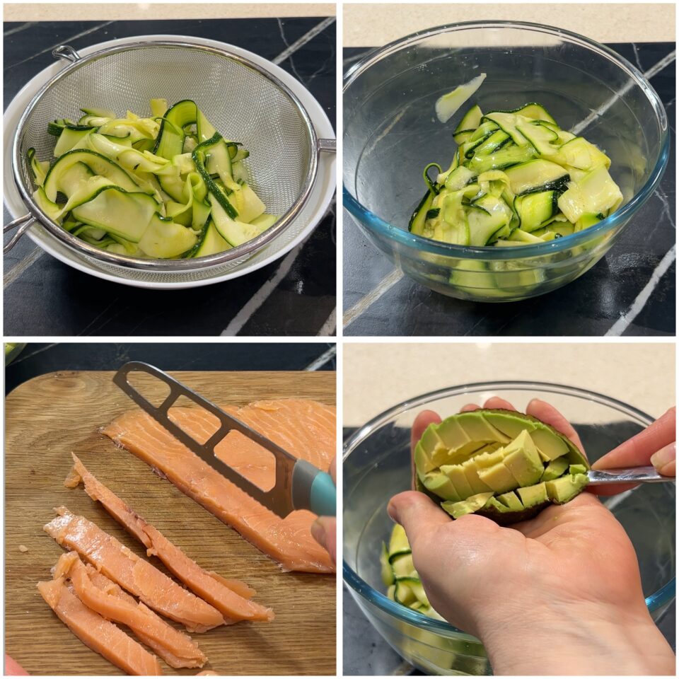 Passaggi per fare l’insalata di zucchine crude, salmone e avocado