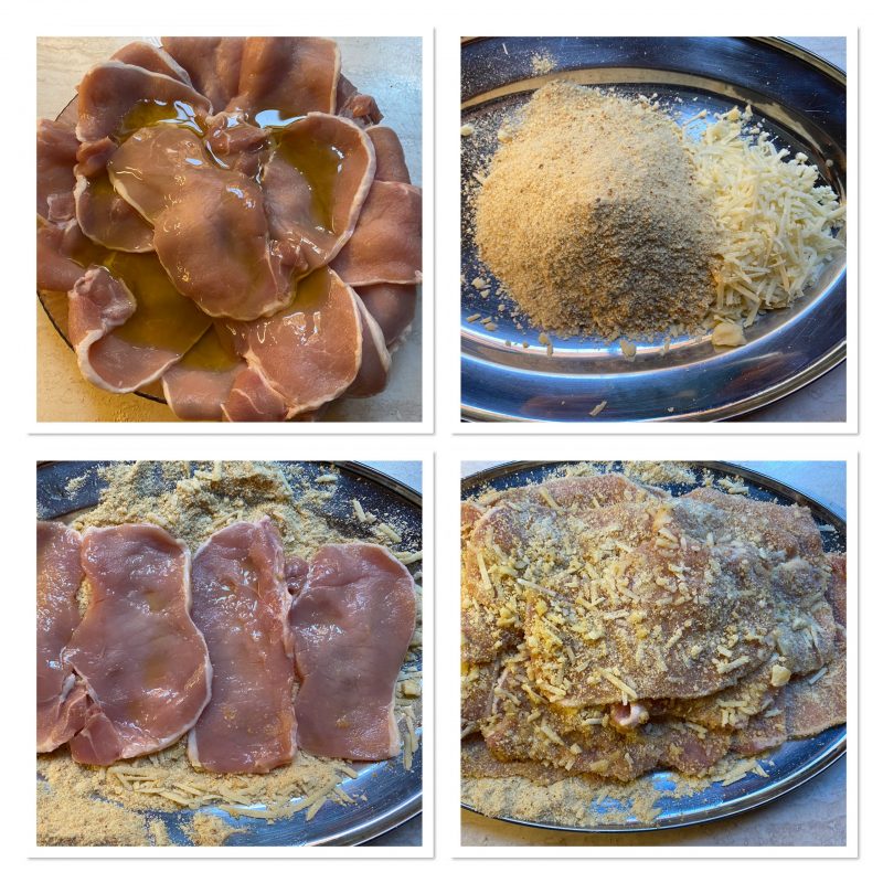 Ungete tutte le fette e passatele in una panatura composta da parmigiano e pangrattato.