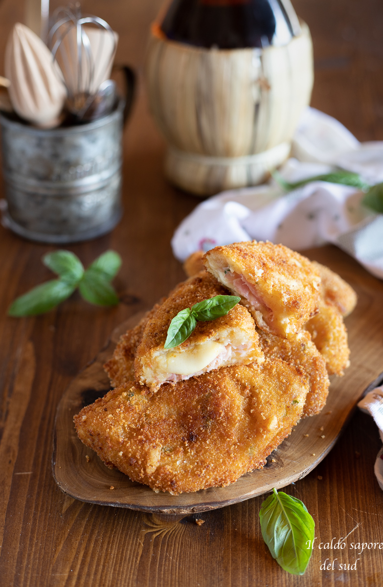 Quindi qualche giorno fa all’ennesima domanda: “mamma che cucini stasera”? Ho improvvisato e con le patate lesse che avevo pensato di utilizzare per un’insalata, ho invece realizzato questi panzerotti di patate dorati, croccanti e super filanti con prosciutto e formaggio, che sono sparite in un attimo!!