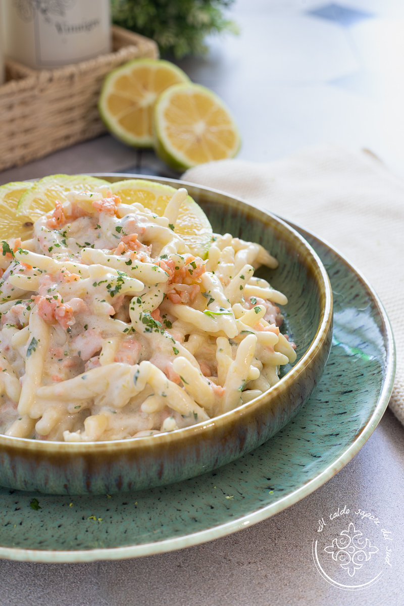 Pasta con salmone affumicato e limone cremosa, facilissima e veloce da fare. Adoro le ricette con il salmone affumicato, e che sia una mousse al salmone affumicato, una pasta fredda zucchine e salmone o dei semplici Involtini di zucchine con robiola e salmone, io non so mai dire di no al salmone affumicato! Qualche giorno fa l’ho trovato in offerta al supermercato e così ho pensato di acquistarne più di una confezione, con una ho preparato la Pasta salmone affumicato e pomodorini, poi ho realizzato anche degli Avocado toast al salmone affumicato e pane casereccio e in fine un rotolo di frittata con salmone e rucola. Con l’ultima confezione invece, ho preparato uno dei primi piatti preferito da mio figlio: la pasta con salmone panna e limone. Per fare questo piatto sfizioso ho pensato di utilizzare un formato di pasta fresca e in particolare le trofie , di cui adoro la consistenza, ma voi potete scegliere il formato che preferite, che delle busiate o dei maccheroni, ma anche della pasta secca classica. Ma adesso andiamo in cucina, scopriamo come fare la pasta con salmone affumicato, panna e limone, ma prima vi ricordo che se volete restare aggiornati sulle nuove ricette potete seguire mia pagina Facebooke il mio profilo Instagram. Dimenticavo: se la provate, fatemi sapere!