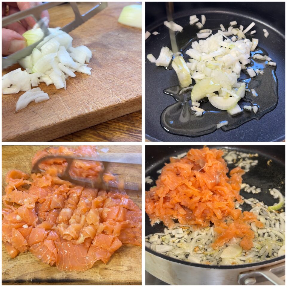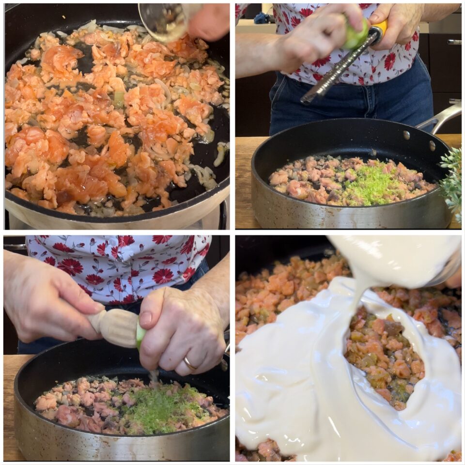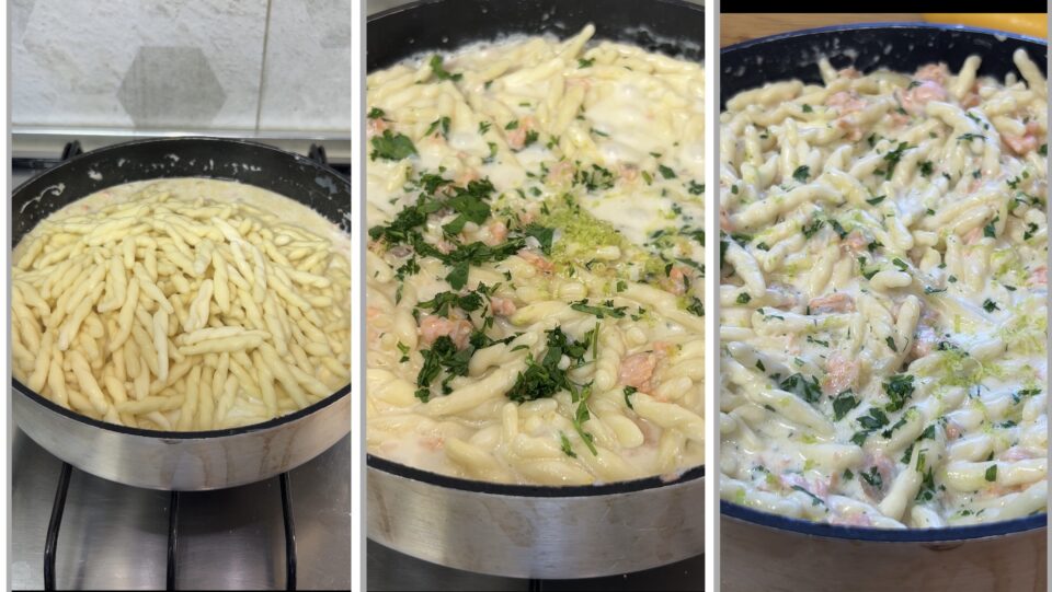 Preparazione della pasta salmone affumicato panna e limone