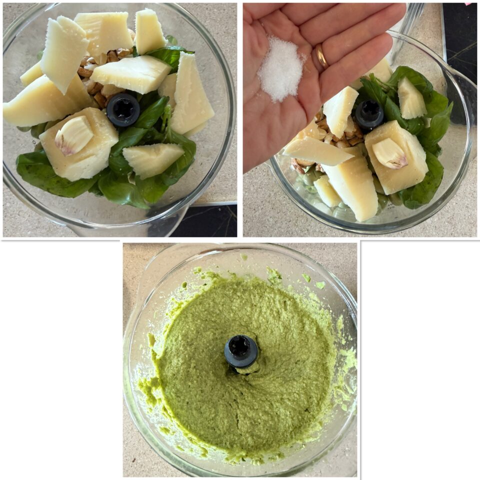 Frullate fino a ottenere un pesto cremoso e omogeneo, non troppo denso.