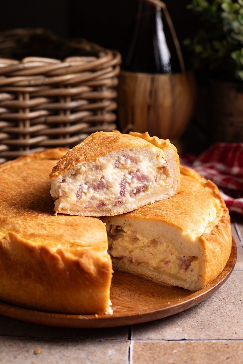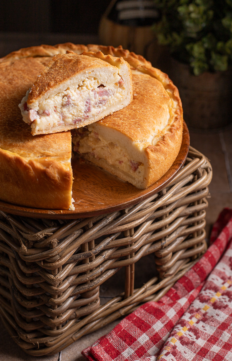 È una torta salata tipica della tradizione pasquale napoletana, preparata con impasto lievitato e un ripieno ricco a base di ricotta, uova, salumi e formaggi.