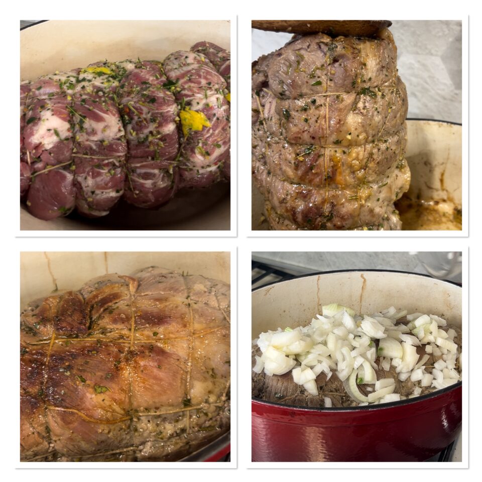 Adagiate il pezzo di carne nella pentola dove avrete fatto scaldare un po’ d’olio e rosolate da tutti i lati rigirandolo in modo che si sigilli.