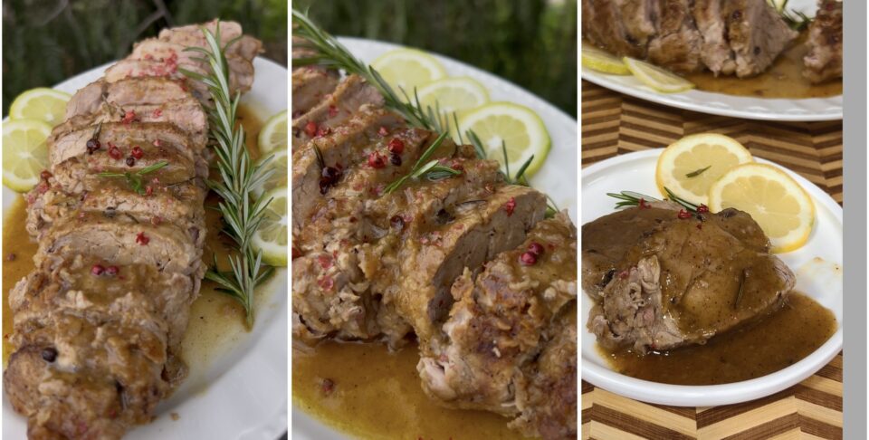 Oggi prepareremo insieme il filetto di maiale al limone e miele con senape e pepe rosa e vedrete che questa ricetta semplice e veloce per un arrosto gustoso, vi permetterà di preparare un secondo di carne succulento e delizioso, che conquisterà tutti al primo assaggio. Il suo fondo di cottura poi, al limone, senape e miele, avvolgerà la carne glassandola e rendendola particolarmente saporita e deliziosa, anche cuocendola in padella. Siete pronti a scoprire la ricetta? Corriamo in cucina, ma prima di metterci ai fornelli vi ricordo se volete restare aggiornati sulle nuove ricette potete seguire mia pagina Facebook e il mio profilo Instagram e che qui troverete 10 secondi piatti natalizi che vi piaceranno di sicuro! Se vi piacciono inoltre i secondi di carne ancora più raffinati, ecco la ricetta del Roast beef e quella del Filetto alla Wellington.
