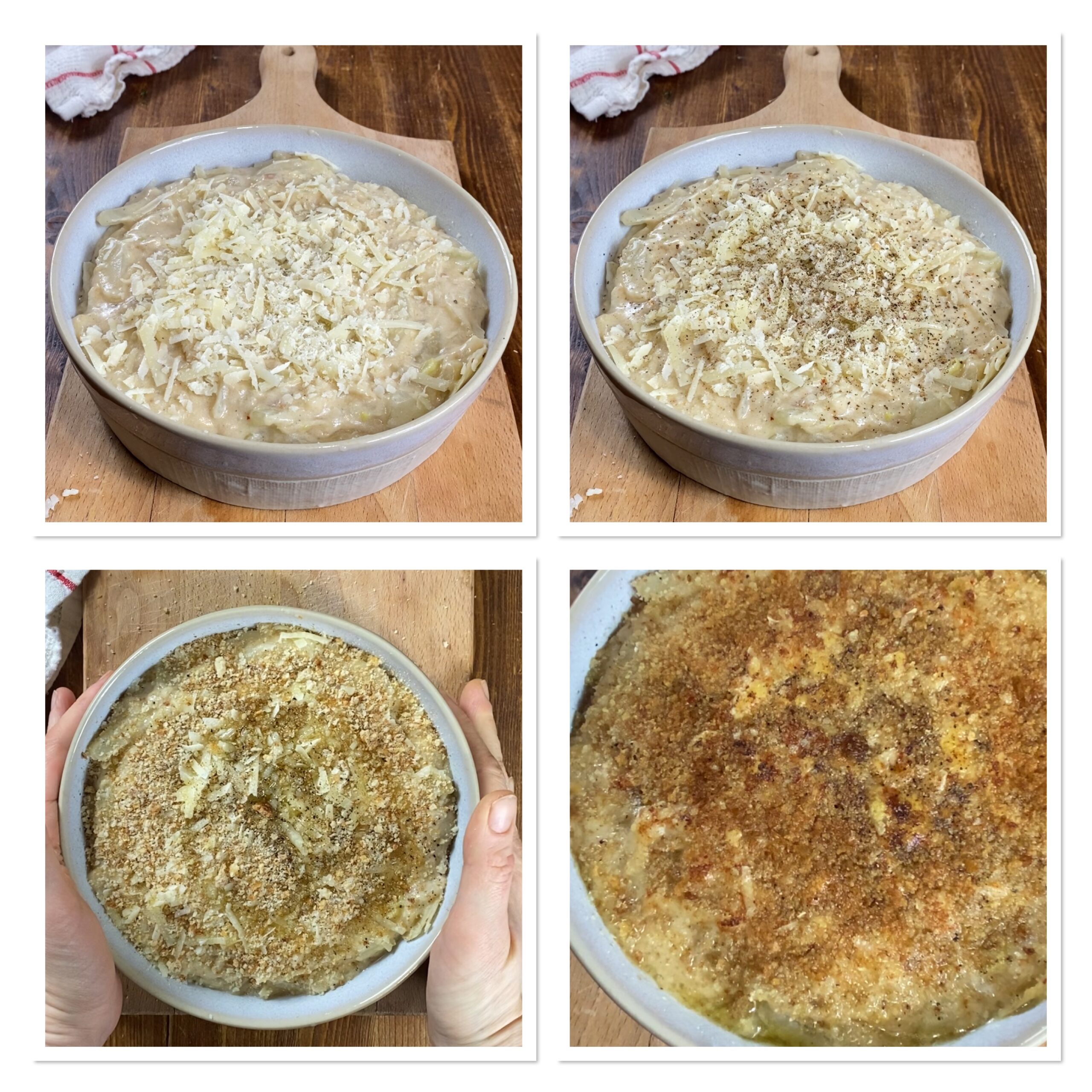 Cospargete con l’ultima parte di formaggio, un po’ di pepe, una manciata di pangrattato e date un filo d’olio.