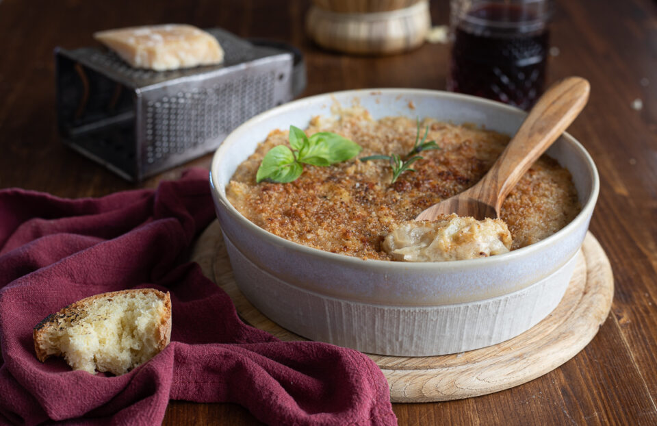 Ripassate in forno per 15-20 minuti a 180°, lasciate gratinate e sfornato. Fate riposare qualche minuto e gustate ancora caldi e cremosi.