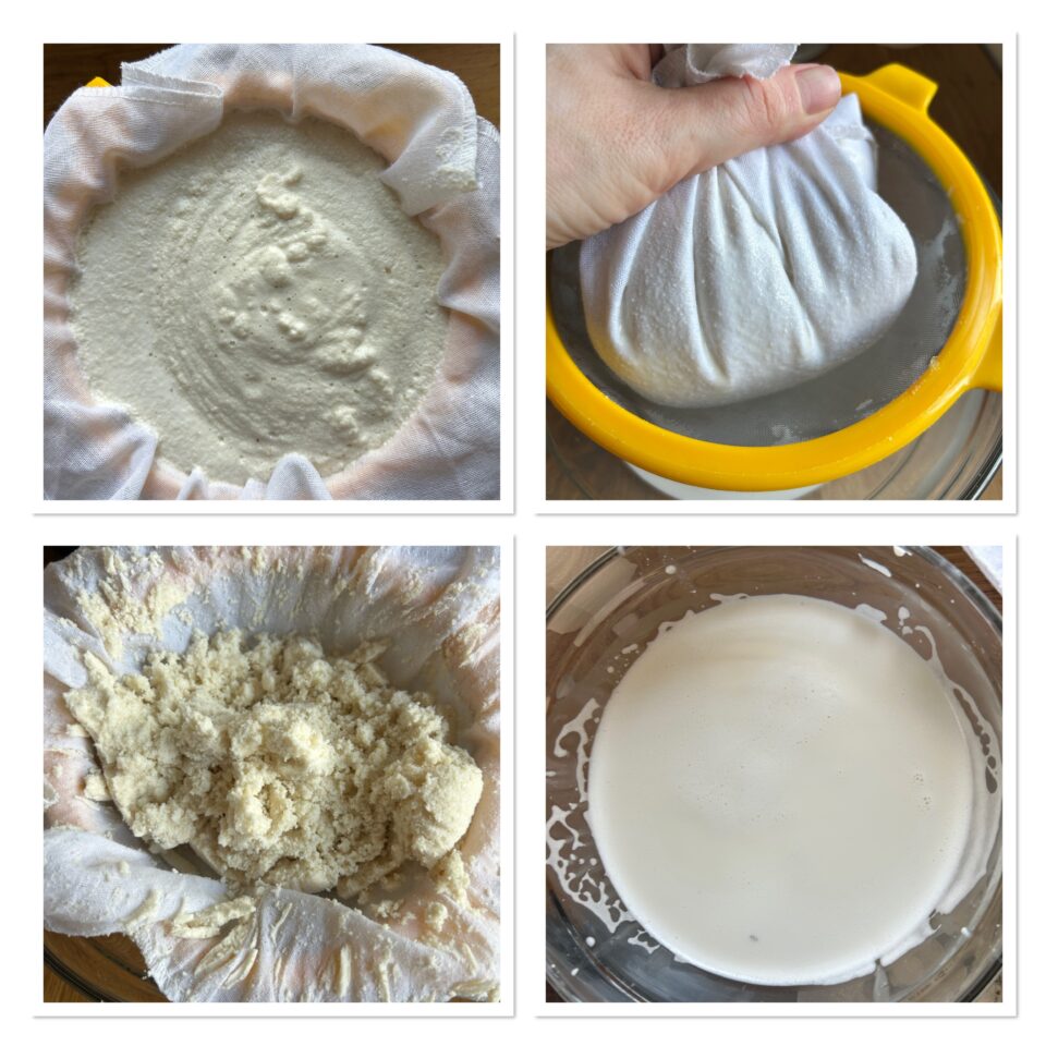 Strizzatelo per bene, raccogliendo in liquido nella ciotola sottostante. Raccogliete la polvere di mandorle e ripetete il passaggio con la parte di acqua rismasta. Strizzate ancora.