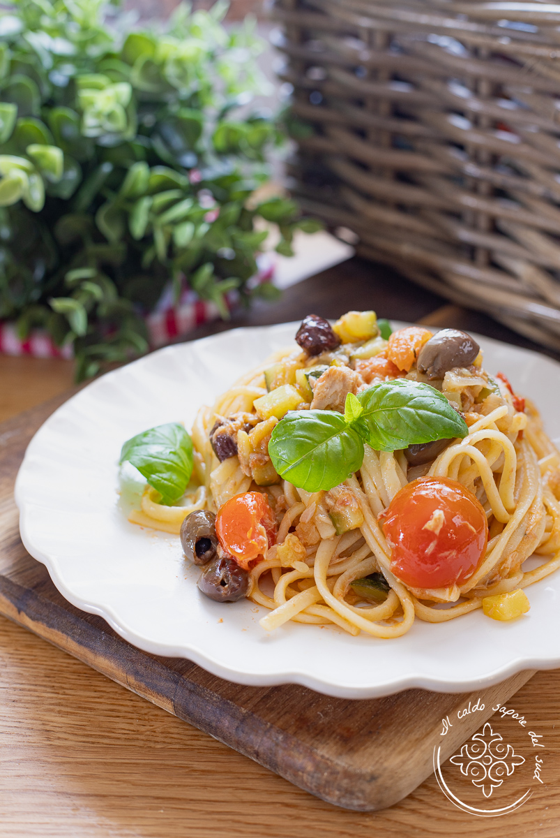 Come fare la pasta tonno zucchine e pomodorini con olive