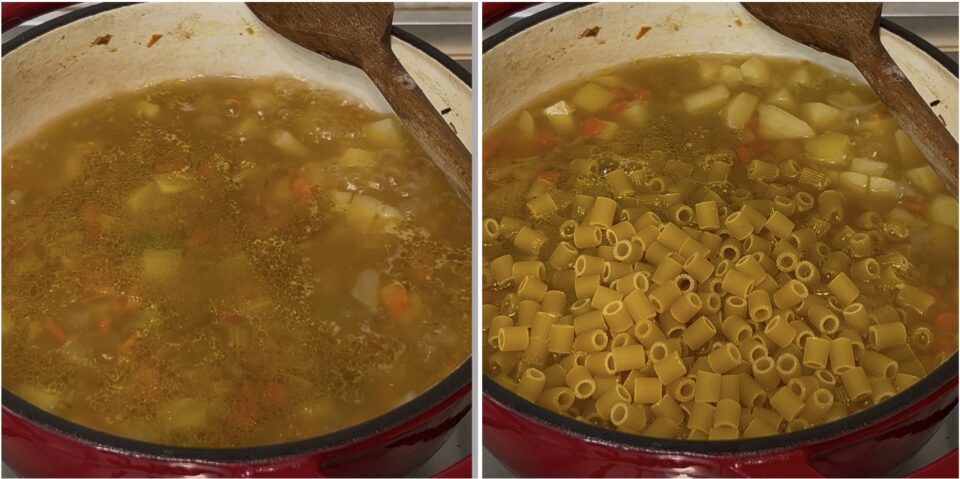 La minestra di pasta e patate va consumata appena fatta, ma la base di patate e brodo può essere preparata in anticipo, anche il giorno prima, e conservata in frigo per 24h. Per una versione vegana di questo piatto, omettete il formaggio grattuggiato.