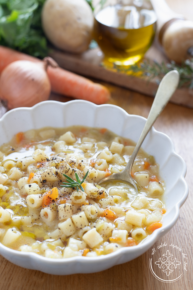 Minestra di pasta e patate la ricetta della nonna. Le ricette con le patate sono sempre le mie preferite e in questi anni ho potuto capire che sono anche le vostre. Dai primi piatti come Minestra di pasta cipolla pomodoro e patate, ai secondi come le Patate ripiene con mortadella e formaggio, passando per i contorni come le classiche Patate al forno veloci o addirittura ai dolci come le Ricetta delle graffe con patate, questo tubero versatile e meraviglioso, economico e sostanzioso, permette di creare mille preparazioni sempre nuove e diverse. Così oggi, voglio parlarvi di una ricetta semplice e gustosissima: quella della minestra di pasta e patate con sedano, carote e cipolla! Non parlo della pasta patate e provola alla Napoletana, ma di un piatto molto semplice, economico e nutriente, che allo stesso modo del primo è un comfort food, ma un po’ diverso. La minestra di pasta e patate con parmigiano è un primo cremoso, caldo e avvolgente che vi conquisterà al primo assaggio, una vera ricetta povera della cucina contadina, una ricetta della nonna economica e deliziosa, che amerete al primo caldo boccone: pronti a seguirmi in cucina? Andiamo subito allora, ma prima di metterci ai fornelli e scoprire come si fa la mia pasta e patate cremosa, vi ricordo che se volete restare aggiornati su tutte le mie ricette, potete seguire mia pagina Facebook (qui) e il mio profilo Instagram (qui).